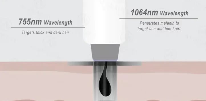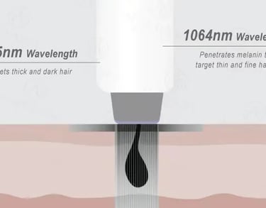 Our laser hair removal uses two different wavelengths — Alexandrite (755 nm) and Nd:YAG (1064 nm) — to ensure safe, effective, and long-lasting results for a wide variety of skin tones and hair types.